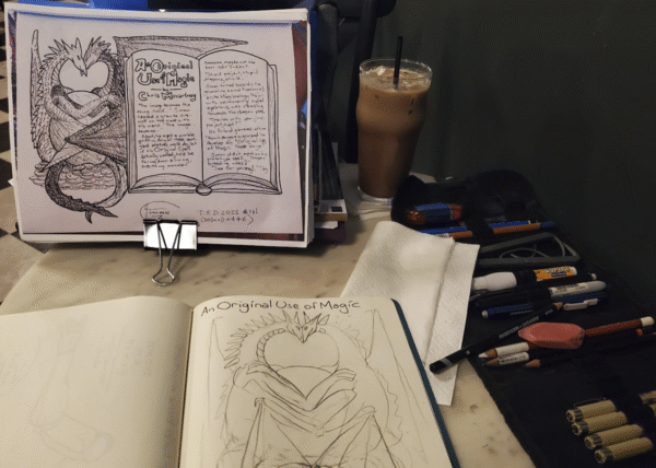 Pictured: My portable drawing setup, which I carry with me almost everywhere I go, to facilitate the "Drawing Every Day" project.