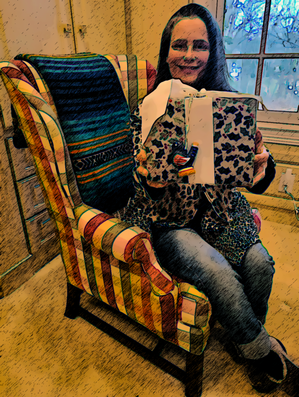 Pictured: Our little Charlie Brown tree, and my wife with a surprise present.